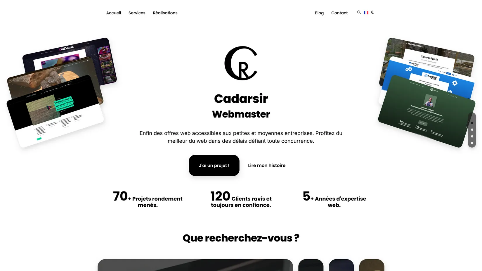 Cadarsir représente la synthèse parfaite entre innovation technique et excellence artisanale dans le domaine du développement web. Cette plateforme a été conçue comme une vitrine technologique démontrant les capacités avancées de l'équipe, en utilisant les mêmes standards professionnels et les mêmes outils de pointe que ceux déployés pour les projets clients les plus exigeants.