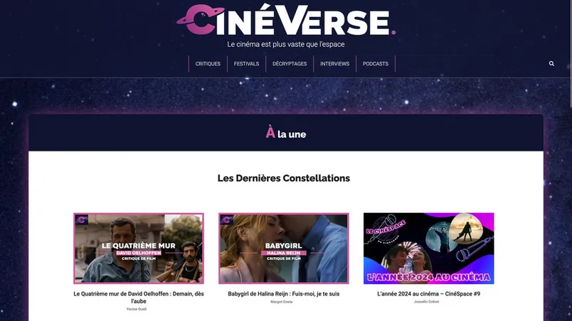 CinéVerse, une équipe de critiques cinématographiques bénévoles ont fait appel à moi pour redesigner leur site internet en 2019. Leur identité visuelle simple, mais intéressante autour de l'univers, a conduit à une réalisation réussie, qui a installé une relation de confiance qui dure toujours.