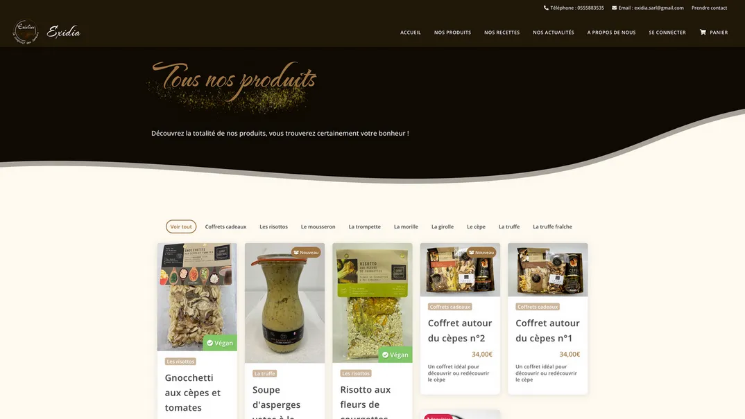 Exidia Sarl, entreprise de conditionnement et de vente de produits du terroir en Corrèze, spécialisée dans les champignons et leurs dérivés, avait besoin d'une solution e-commerce complète et sur-mesure. Face à un marché de niche exigeant et des besoins spécifiques en logistique, j'ai développé une plateforme e-commerce intégralement personnalisée alliant performance technique et expérience utilisateur exceptionnelle.